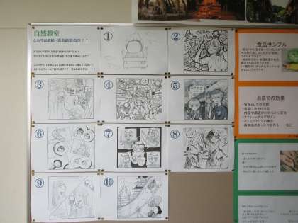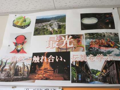 2年生は自然教室に向けて準備を進めています。しおりの表紙絵投票やスローガン「最光」が掲示されています。