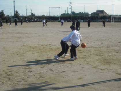 サッカーをやっている生徒、バスケットをやっている生徒、縄跳びをしている生徒。
