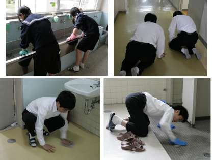 黙 慟 公開日 2011/04/28 更新日 2011/04/28 学校生活 3年生が黙々と掃除に取り組んでいます 廊下の水拭き 手洗い場の清掃 トイレの床磨き しゃべっている生徒は一人もいません いいね(0)