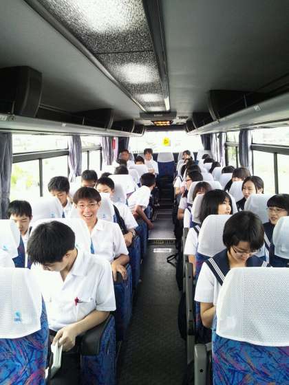 心配した雨もなく出発式を終え、バスに乗車し、出発しました。