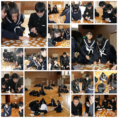 本日の5,6限 3年生は体育館で百人一首大会を行いました