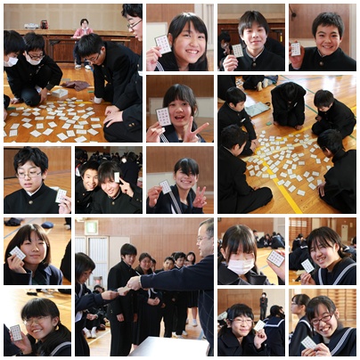 本日の5,6限 1年生は体育館で「百人一首大会」を行いました