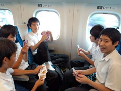 車内レクを楽しんでいます。 「先生撮って〜♪」 ただ今 浜松通過