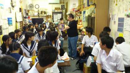 『篠原まるよし風鈴』の篠原さんの説明を聞いて絵付け作業に入ります。