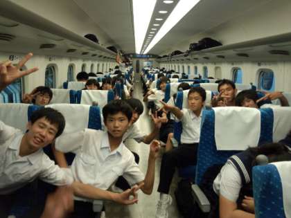 予定通り 東京駅を出発した新幹線 その中では ご覧の通り 盛り上がっています