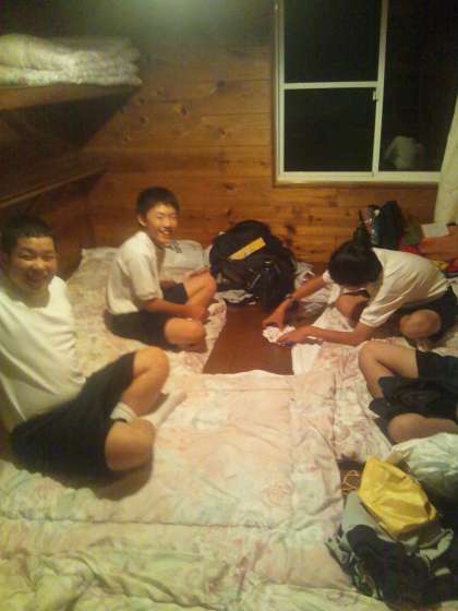 学年レクリエーションを終え、入浴準備、就寝準備をしています。