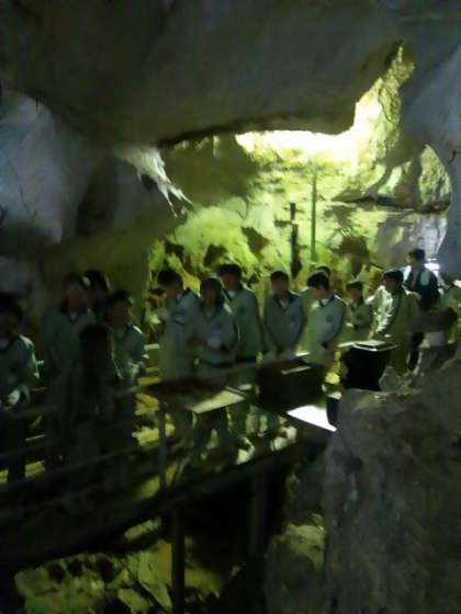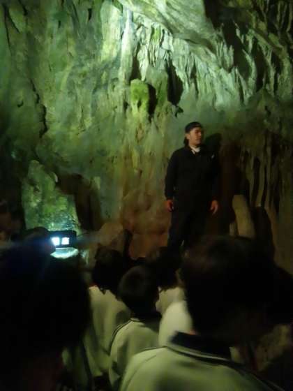 鍾乳石のできかたや、古代人の暮らしについてレクチャーを受けました。
