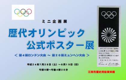 江南市歴史民俗資料館では、オリンピックにあわせ、ミニ企画展「歴代オリンピックポスター展」を開催します。