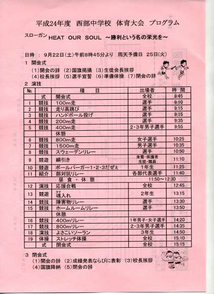 9/22(土)に行われる「体育大会」、そのプログラムが完成しました。