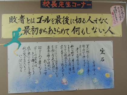 始業式で 校長先生の式辞の中にあったことばが掲示されました