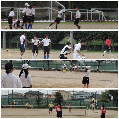 グランドではサッカー部と女子ソフトテニス部が練習していました。