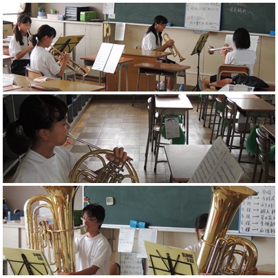 室内では吹奏楽部が個人練習に取り組んでいました。