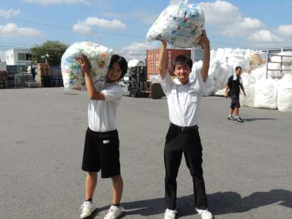 生徒会総務の加藤君と飯塚さんが、今日回収業者さんへ持って行きました