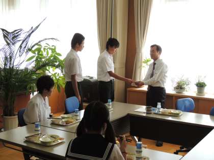 今日3年1組の生徒から一班ずつ 校長先生との会食を始めました