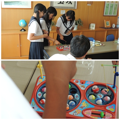 生徒の緊張をほぐすため 校長先生はいろいろな小物を準備しています