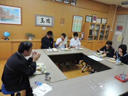 校長先生との会食 (6) 公開日 2012/10/17 更新日 2012/10/17 学校生活 10/17(水)校長先生との会食 今日は1組6班 話題は海外旅行に始まり 飛行機まで広がっていました いいね(0)