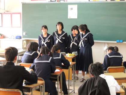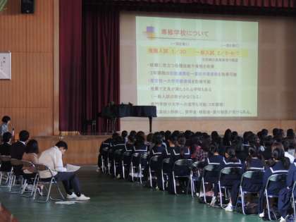 1年生は秋の校外学習で行った「上級学校訪問」の報告会
