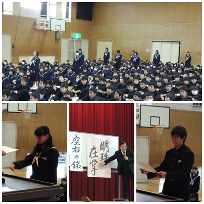 表彰伝達では「尾張教育研究会書写作品コンクール」に
