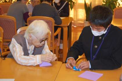 ふじの郷交流 公開日 2012/11/14 更新日 2012/11/14 学校生活 後期になって最初の委員会。ボランティア委員会の新メンバーで「ふじの郷」を訪問しました。「ふじの郷」のみなさんは、毎回、中学生の訪問を心待ちにされているそうです。今日は、一緒に折り紙をしました。みんなの笑顔があふれ、楽しい一時となりました。 いいね(0)