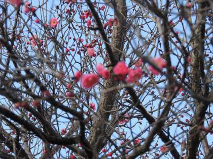 昭和62年度の卒業生が植えた「紅 梅」の花もほころび始めました。
