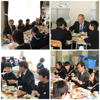 3,4限の授業を参観された後、1年5組で生徒ととも会食されました。