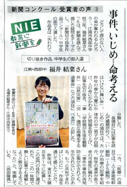 3年生が総合の時間に取り組んできた「新聞切り抜きコンクール」