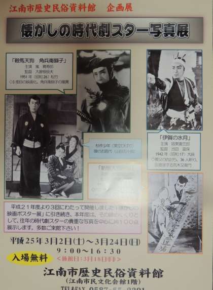 「懐かしの時代劇スター写真展」が下記のように行われます。