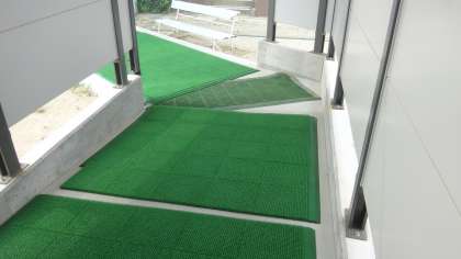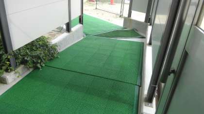 渡りのマット 完成しました 公開日 2013/06/06 更新日 2013/06/06 1年 雨が降ると,プレハブとの渡りが水浸しになって,通行がとても不便でした。雨降りの日が続く前に,なんとか間に合ってほっとしています。30cm四方のパーツを組んで1枚の大きなマットをつくりました。渡りの掃除当番の生徒が協力してくれました。 いいね(0)