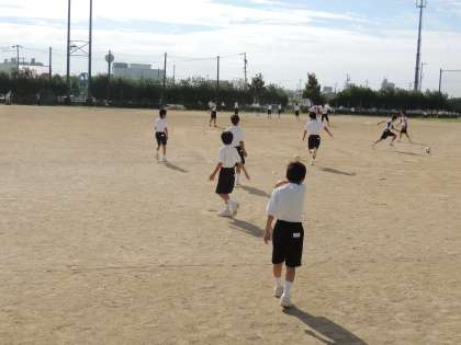今朝の朝練から (2) 公開日 2013/06/13 更新日 2013/06/13 部活動 サッカー部1年生の練習 ディフェンスをつけてのパス練習です フリーの味方を素速く見つけられるかな? いいね(0)