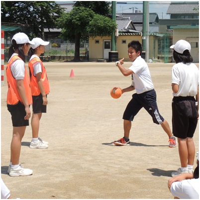 種目は「ハンドボール」 得点に繋がる動きを考える授業でした。