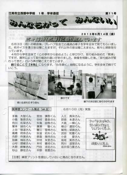 黙々と清掃に取り組んでいるクラスの様子や