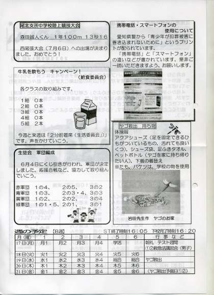 6/19(水)に行われるヤゴ救出について書かれています。