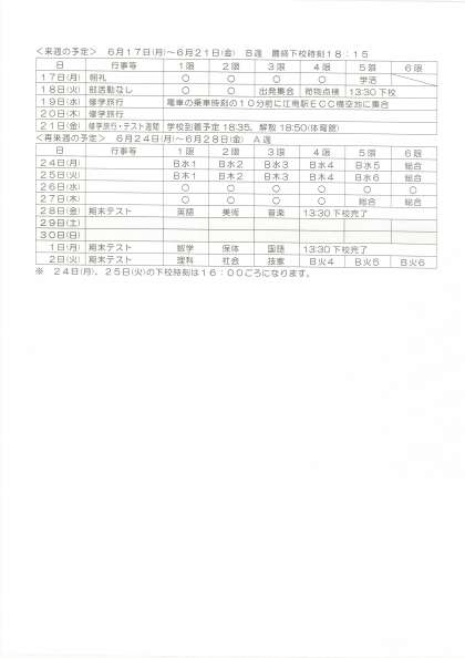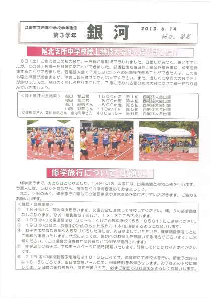目前に迫った修学旅行の注意点などが書かれています。