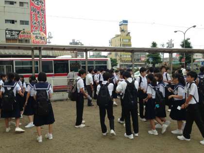 天気は不安ですが、みんないい笑顔で集まって来ています。 点呼をして、チケットを受け取って出発です!