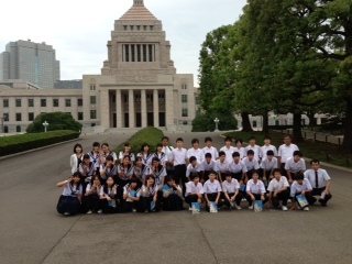 最後に、議事堂前で記念撮影をして、バスに乗車して、ディズニーランドに向かいます。