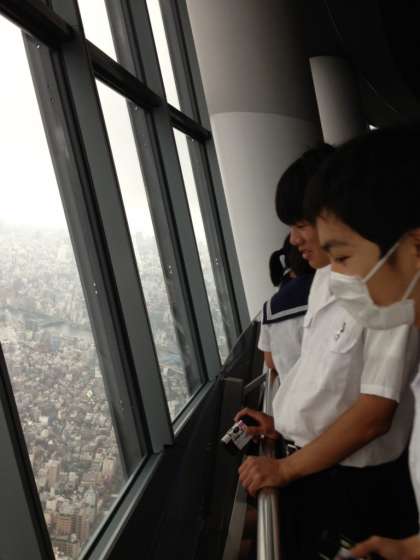 上まで登れました。 天気は生憎ですが、見晴らしは素晴らしい!