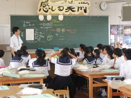 校舎をまわると、1年4組が美術の授業をしていました。