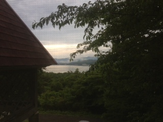 おはようございます。天気は今のところ曇りですが、パヒヨンの森からは、山中湖が見ることができました。