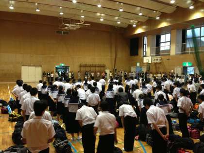 修学旅行の終わりの会、帰校式を行いました。