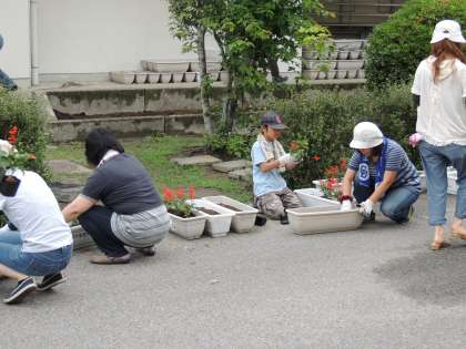 6/22(土)PTA活動のひとつである、花の植え替えを作業を行いました。