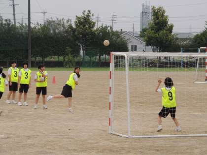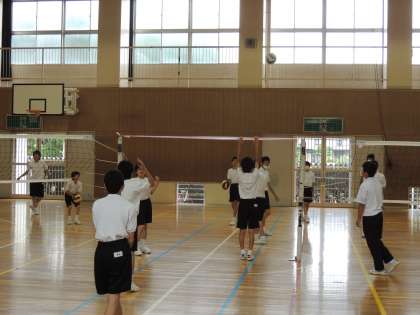 男子がバレーボール、女子がハンドボールに取り組んでいました。