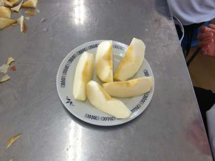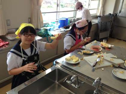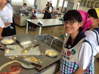 本日4限に1年生が家庭科の授業でリンゴの皮むきテストを行いました。