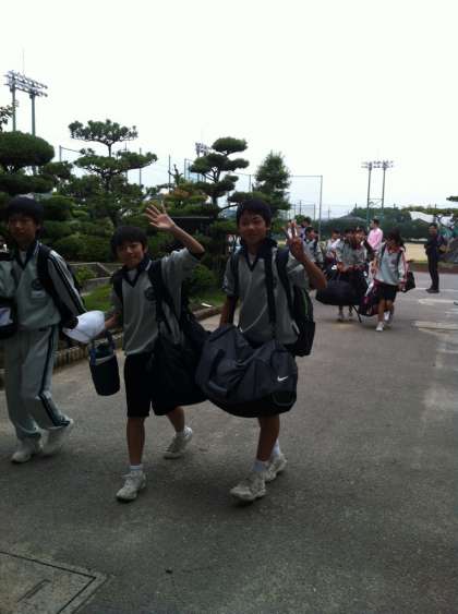 出発式を終えて、バスに乗り込みました。 時間に余裕を持ち、出発です!