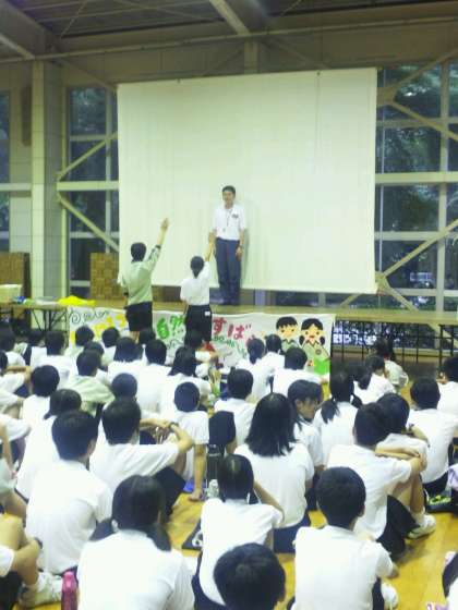 学年レクが始まりました。学年委員長と副委員長の選手宣誓です。クラス対抗で競います。