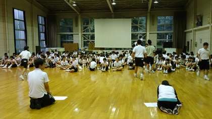 学年レクが始まりました! まずはジェスチャー伝言ゲーム!! 無言で伝えられるかな...??