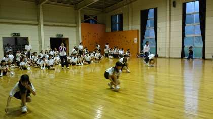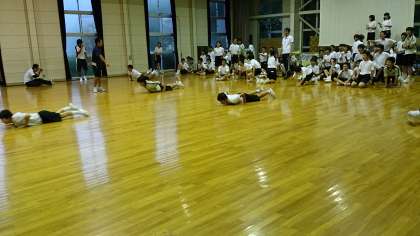 学年レク2種目は陸上水泳です 先生の見本を真似しつつ全力で陸を泳ぎます!
