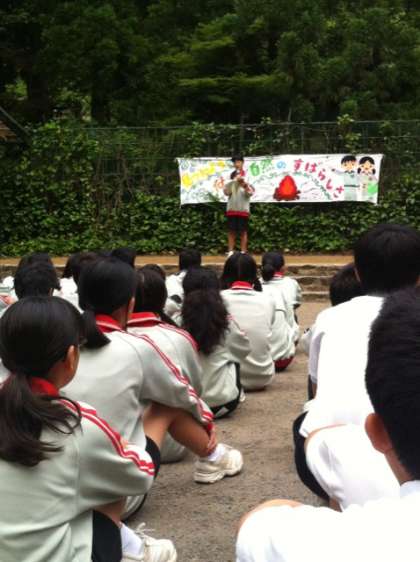 朝の集いが行われています。
