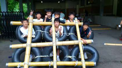男子チームのイカダが完成しました。 (^^)v