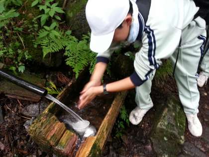 わき水発見!! とても冷たい水で、疲れた体を癒してくれます。