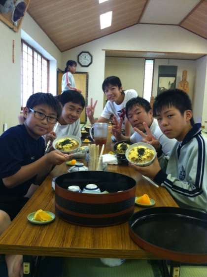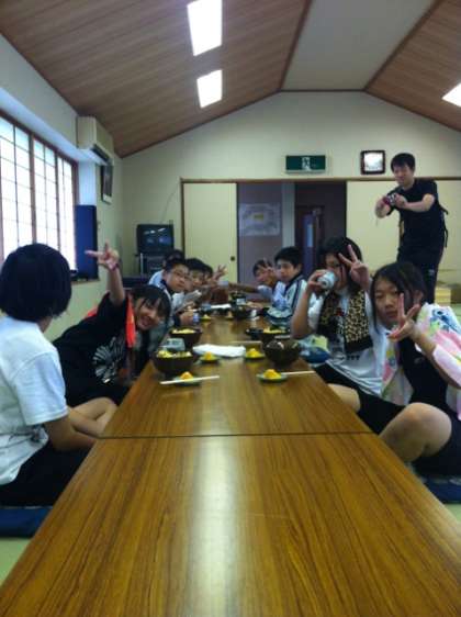 川での活動が終わり、今から昼食です!